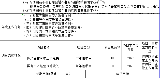 2020年國有資本經營預算支出總額50萬元,與上年經費金額一致,主要用于保障國資監管工作費用支出。