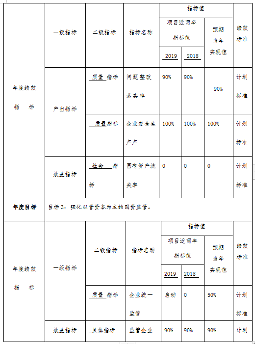一、部門整體績效目標編制情況2020年市國資委部門整體績效目標是根據部門主要職責編制,制定細化明確的預算績效目標和可考核、可量化的績效指標,并加強對績效目標的審核,將其作為預算編制和資金安排的前置條件和重要依據。加強對支出效果和資金使用績效的監控,將預算績效評價結果作為預算安排的重要依據。