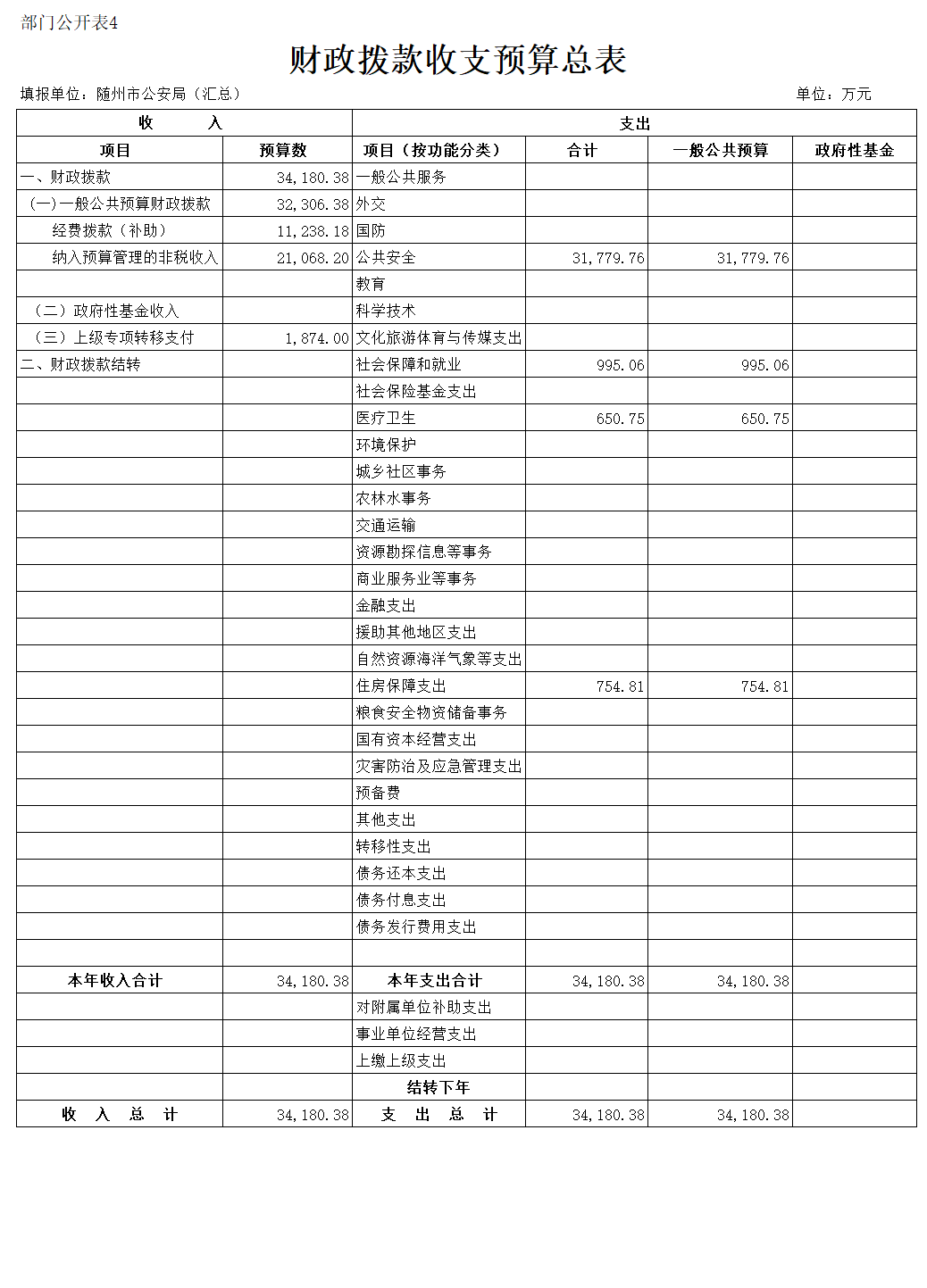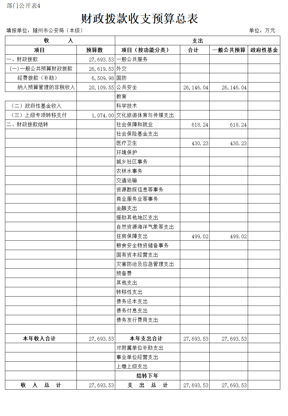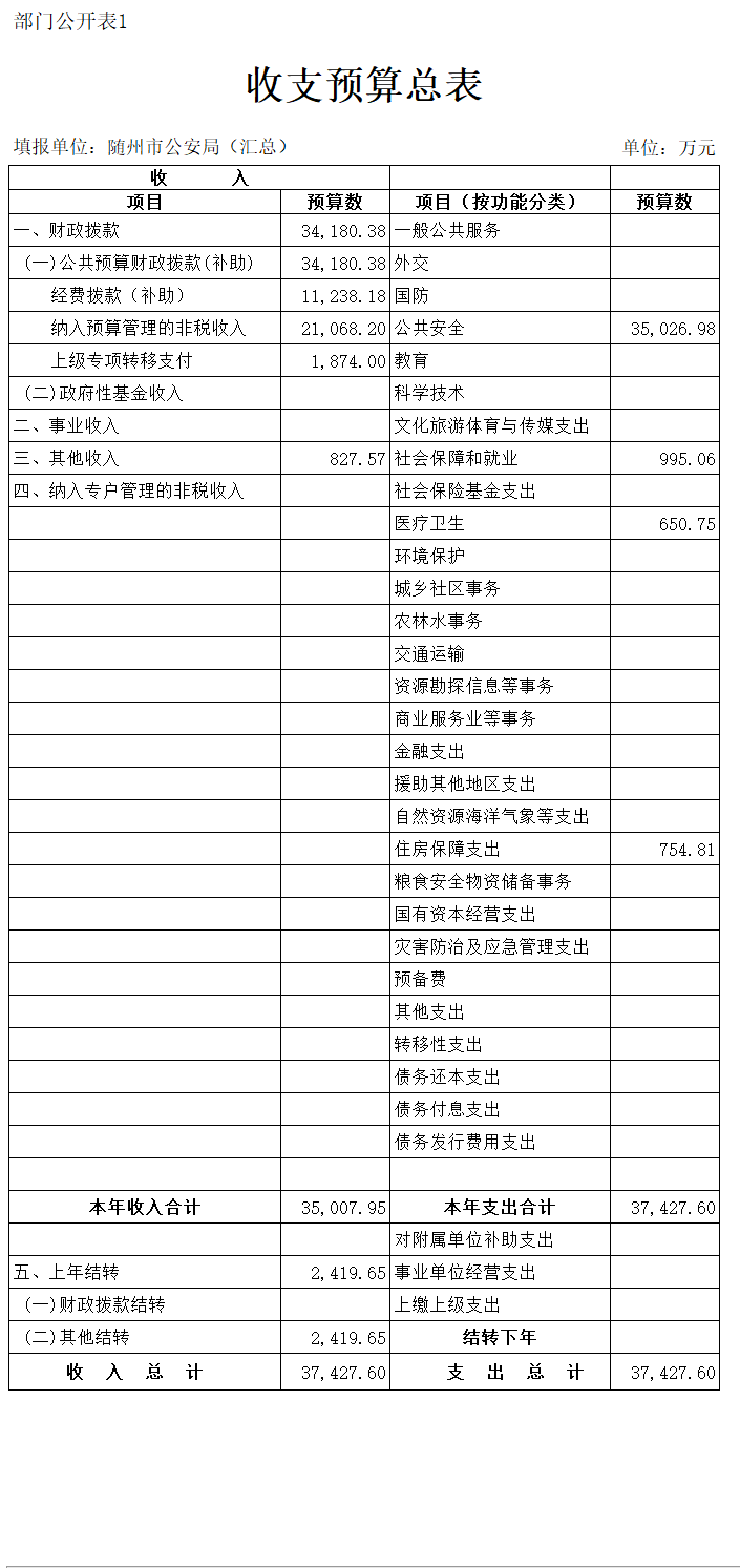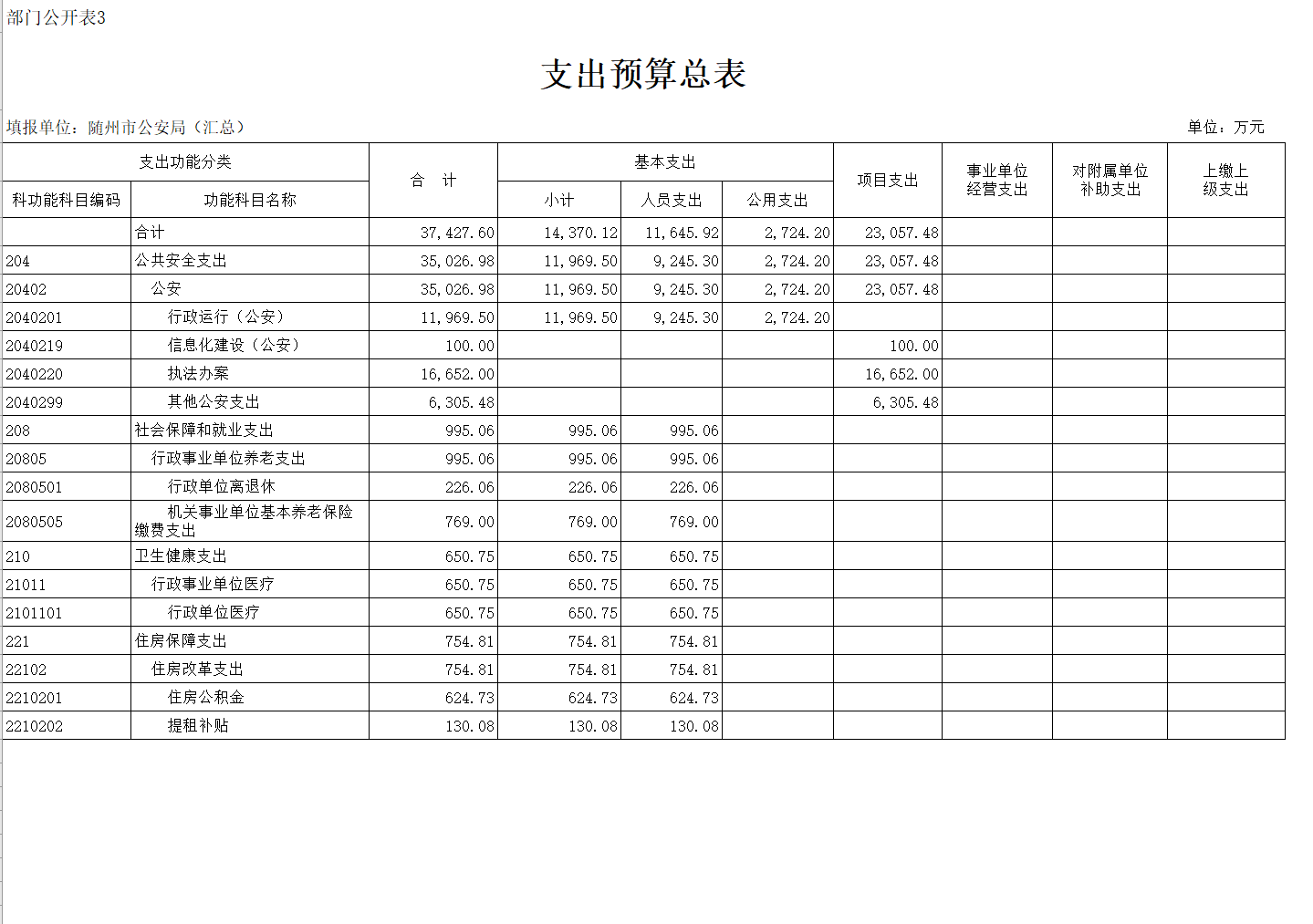第三部分??隨州市公安局本級及匯總2020年部門預算表