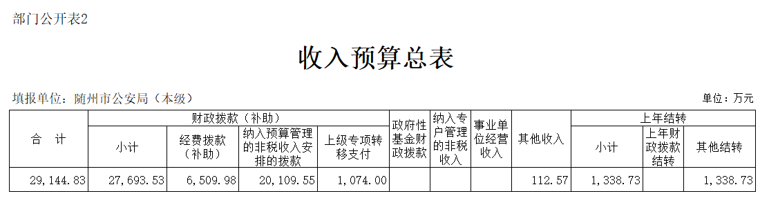 隨州市公安局本級預算包含隨州市公安局(本級)7個職能科室、直屬15個支隊及隨州高新技術產業園區公安分局。