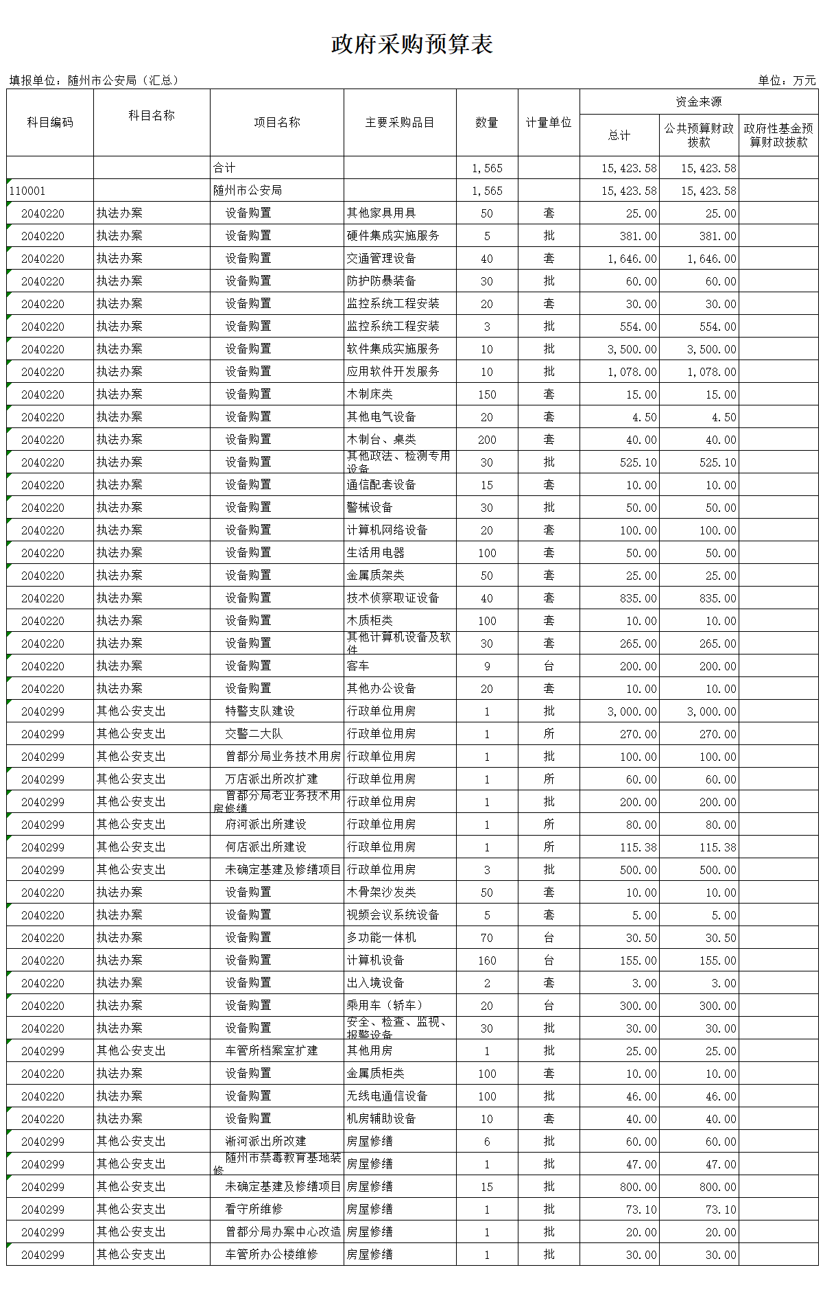1、隨州市公安局匯總財政撥款項目支出20232.83萬元,比上年度增加10199.83萬元,增加101.66%,根據實際需要安排。
