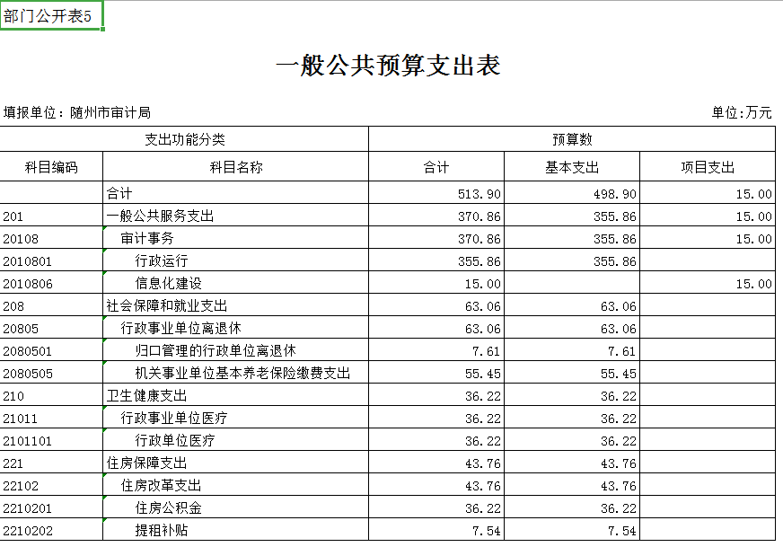 第三部分 隨州市審計(jì)局2019年部門預(yù)算表