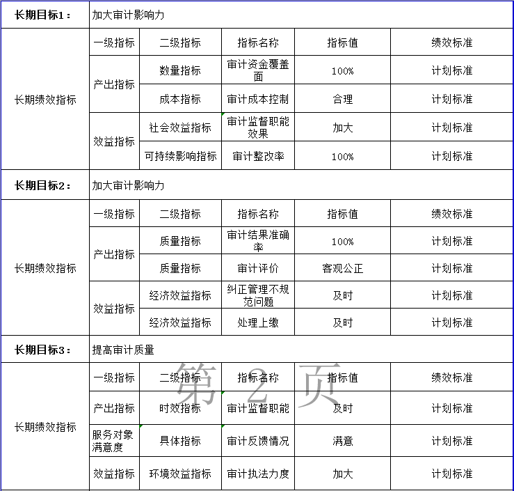 社會效益指標(biāo):項(xiàng)目實(shí)施后,提出的審計(jì)建議促使被審計(jì)單位制定整改措施的數(shù)量,用以評價(jià)項(xiàng)目產(chǎn)生的直接或間接社會效益。
