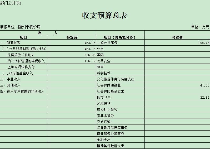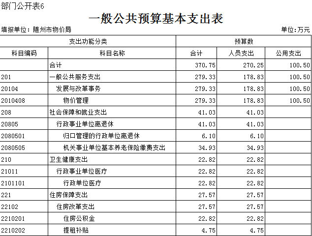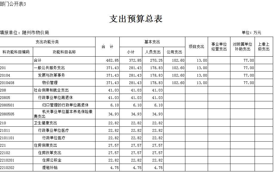 第三部分隨州市物價局2019年部門預算表