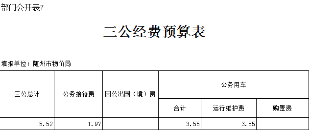2019年隨州市物價局“三公”經費年初預算安排5.52萬元,和上年5.53萬元持平。其中: