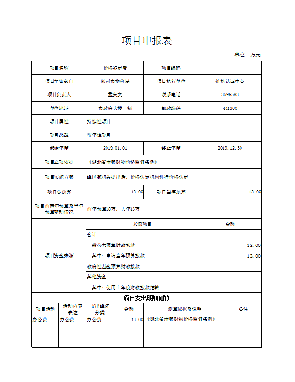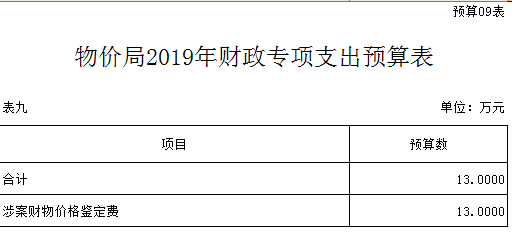 第三部分 隨州市物價局2019年部門預算表