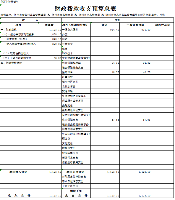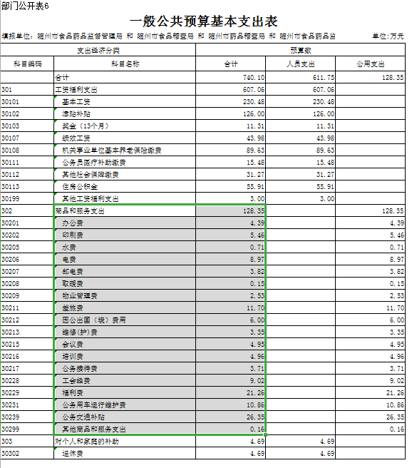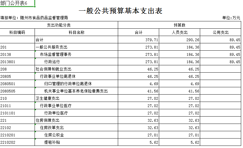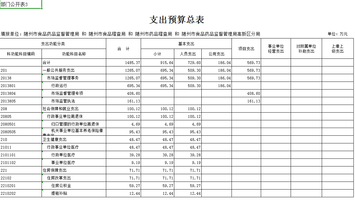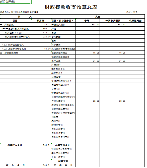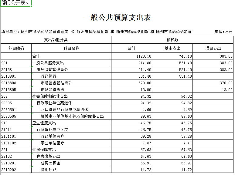 第三部分 隨州市食品藥品監督管理局2019年部門預算表