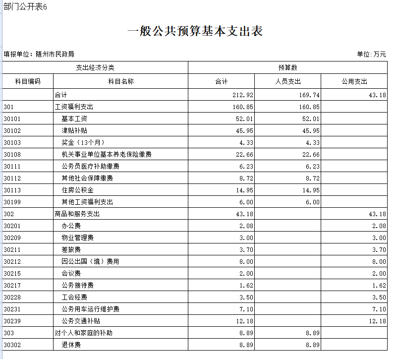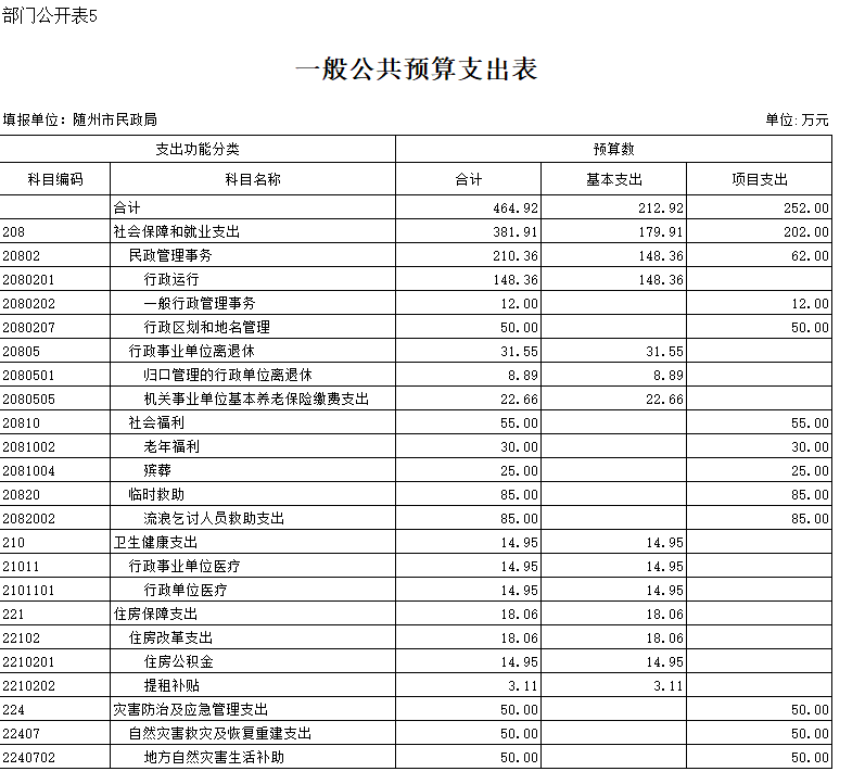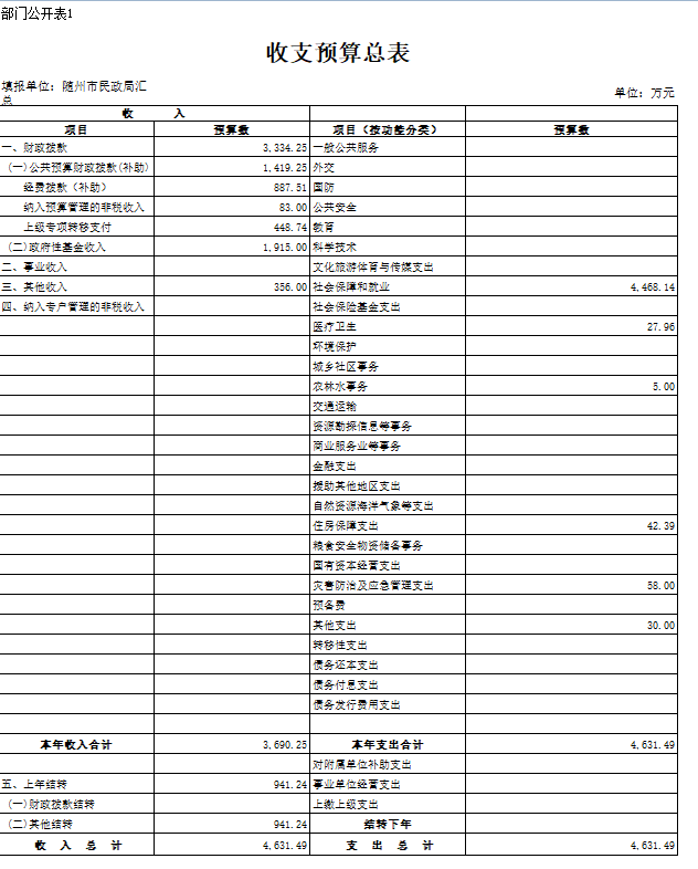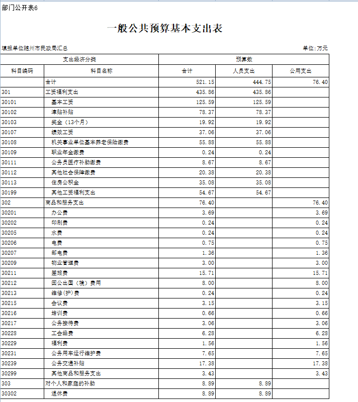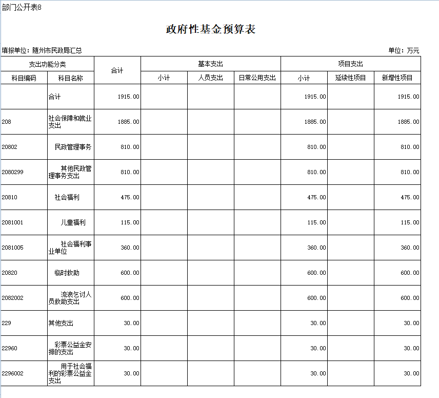第三部分 隨州市民政局2019年部門預(yù)算表