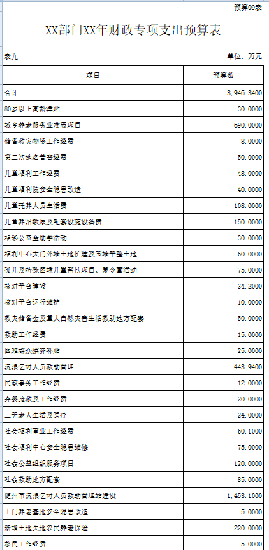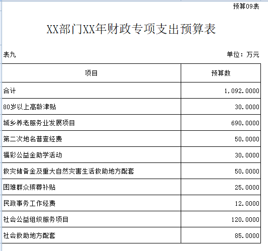 九、財(cái)政專項(xiàng)支出預(yù)算表
