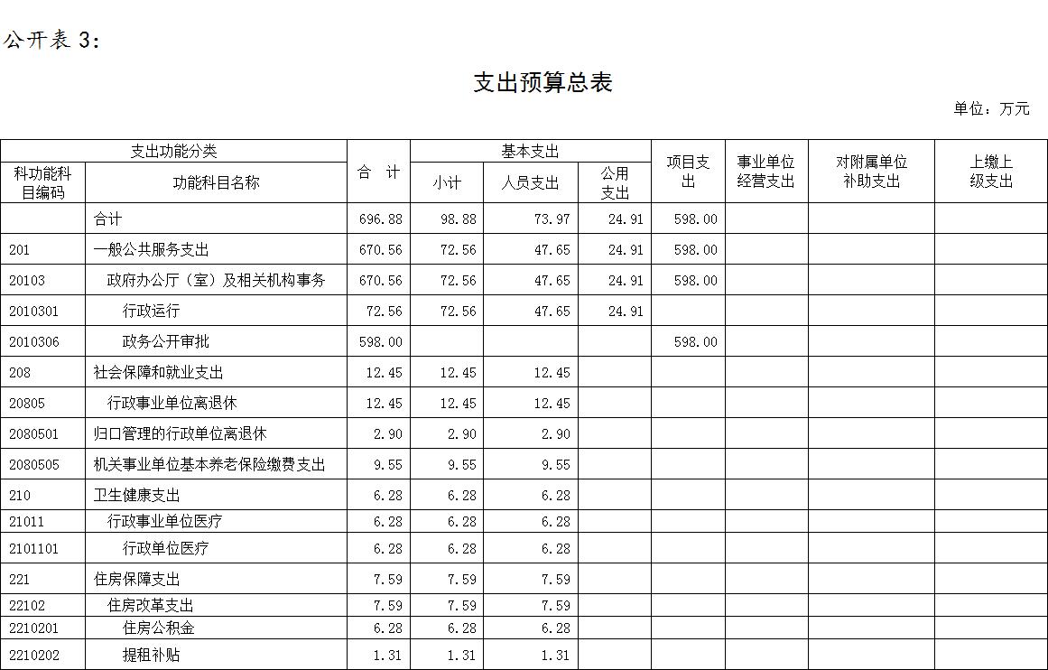 4、一般公共服務(201類)政府辦公廳(室)及相關機構事務(03款)行政運行(01項)2010301:反映用于保障機構人員工資福利的基本支出。