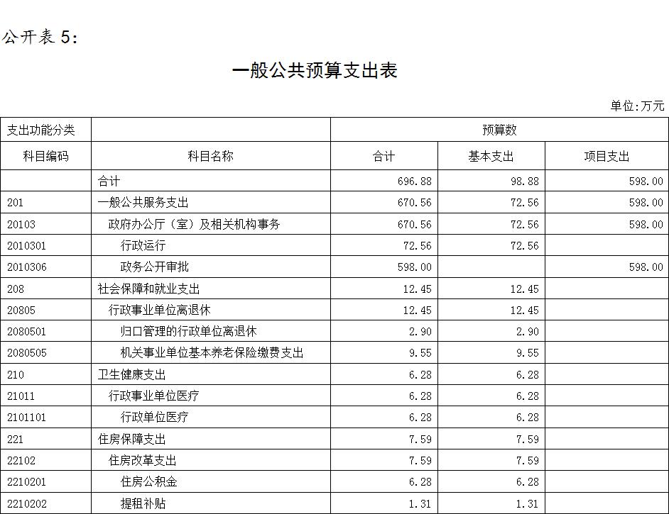 5、一般公共服務(201類)政府辦公廳(室)及相關機構事務(03款)一般行政管理事務(02項)2010302及專項服務(04項)2010304:反映用于保障中心平臺正常運行的支出。