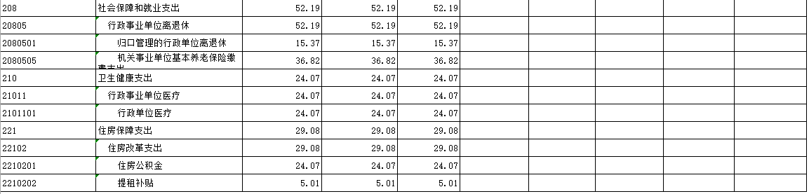 3、行政單位醫療(2100501項):反映財政部門集中安排的行政單位基本醫療保險繳費經費,未參加醫療保險的行政單位的公費醫療經費,按國家規定享受退休人員的醫療經費。