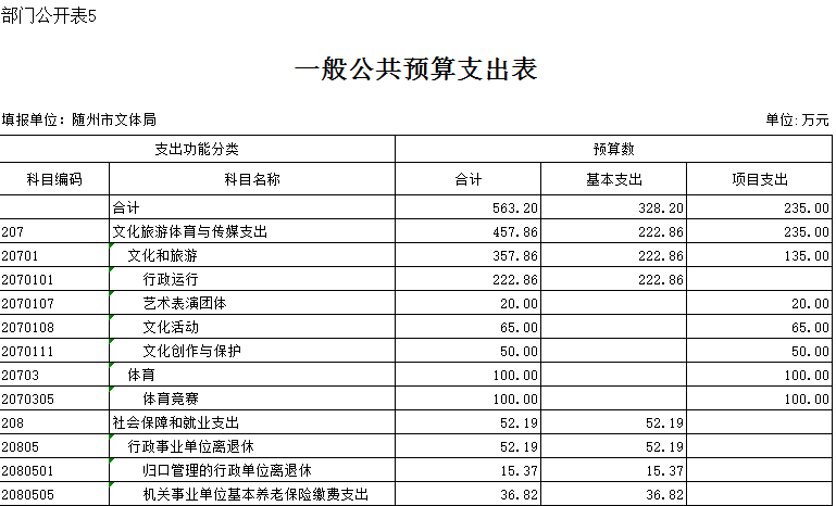 五、一般公共預算支出表