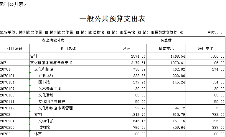 第三部分 隨州市文化體育新聞出版廣電局2019年部門預算表