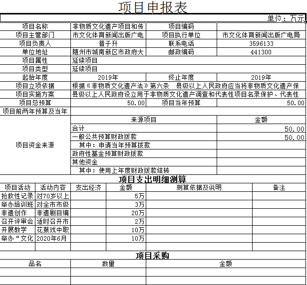 2019年隨州市文體系統均無政府采購。