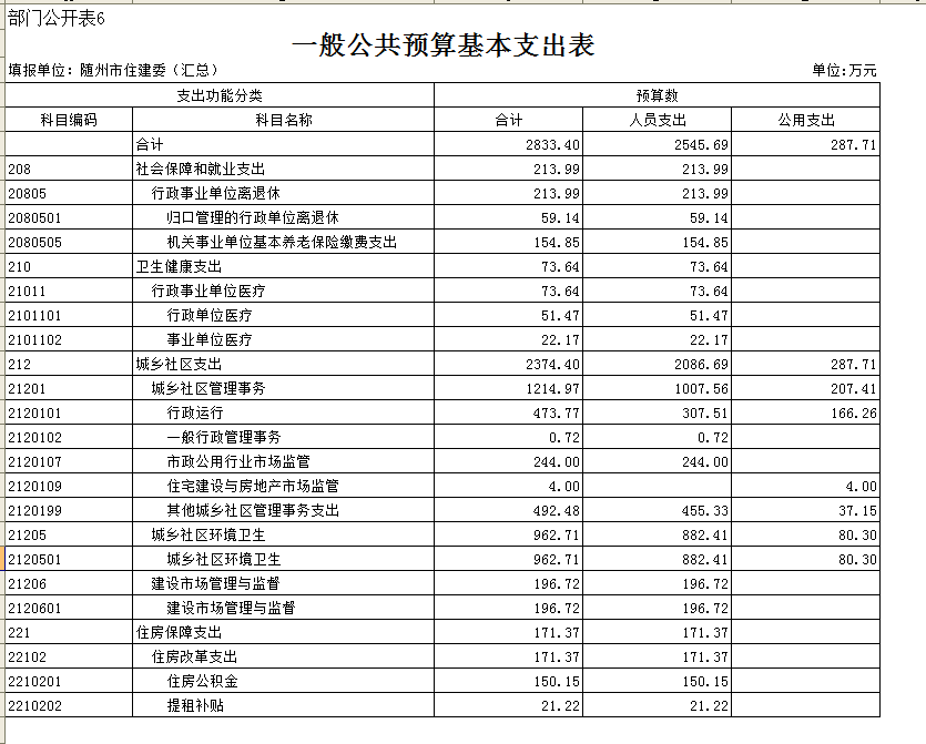 住房公積金(2210201):反映市住建委機關住房公積金支出。