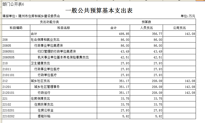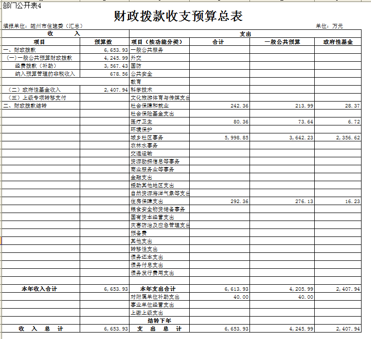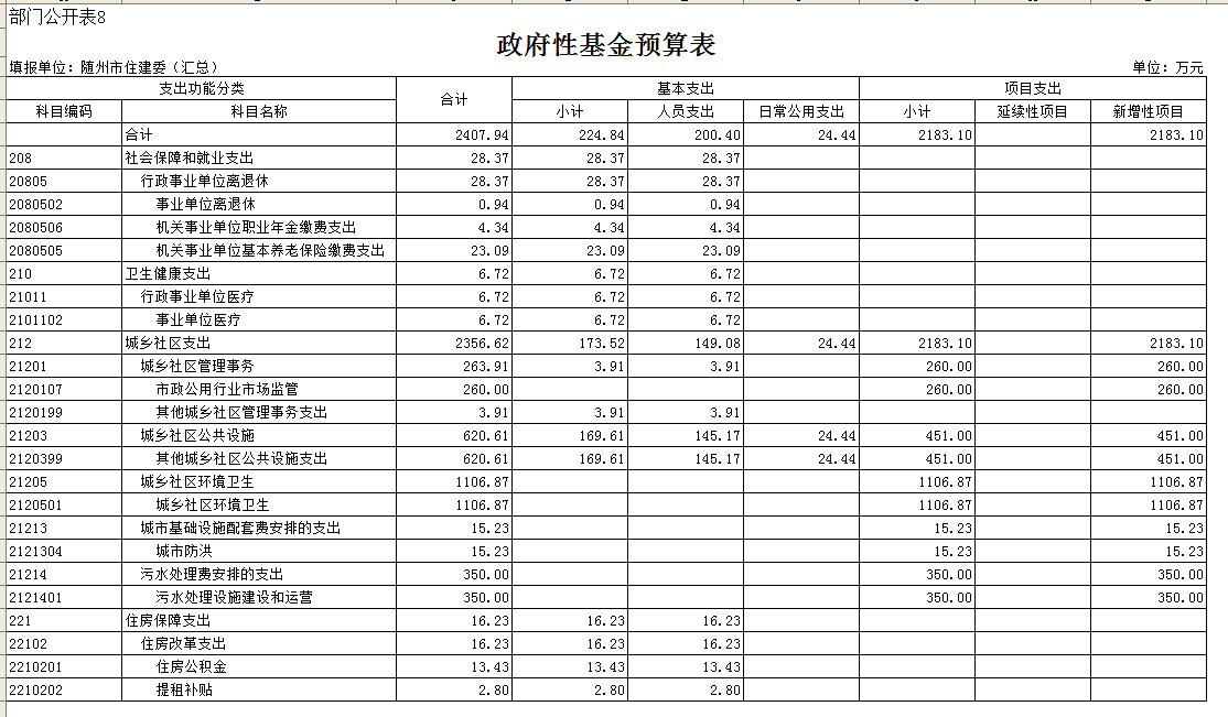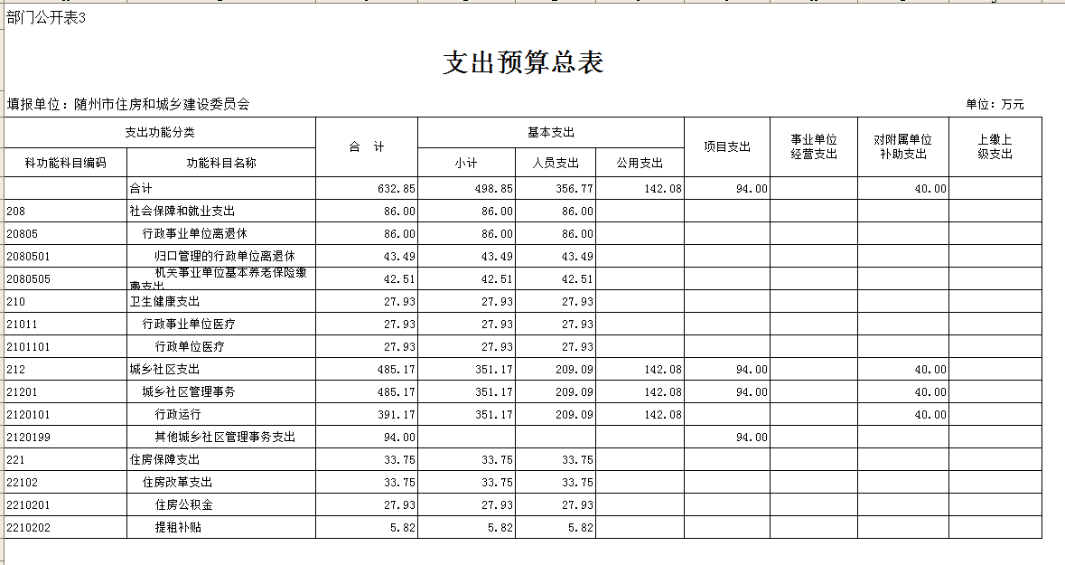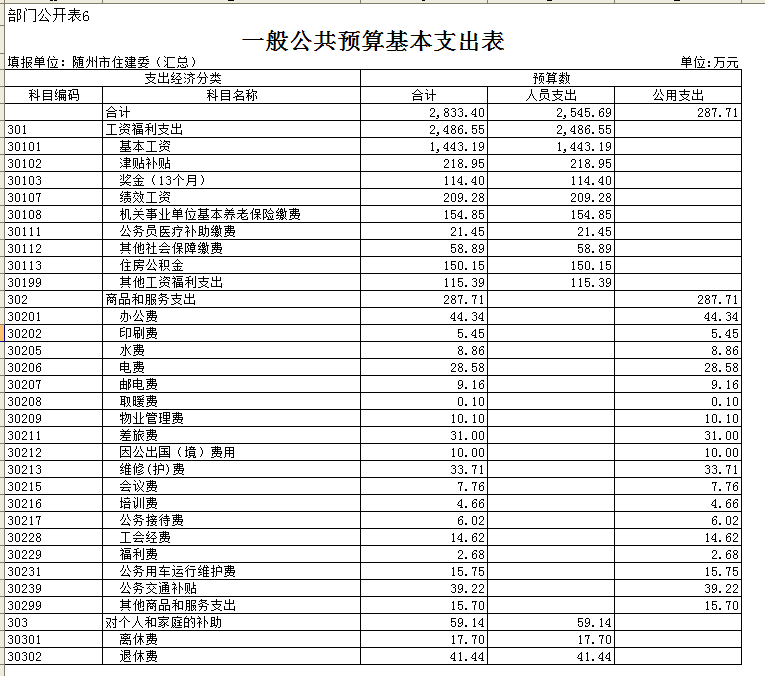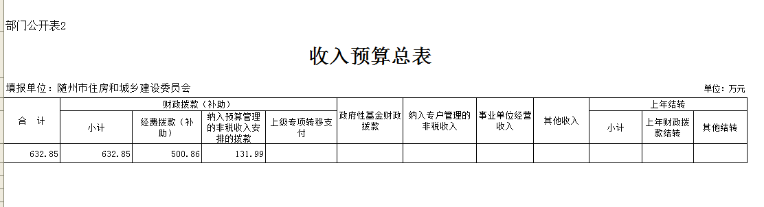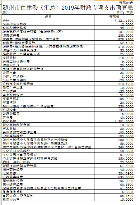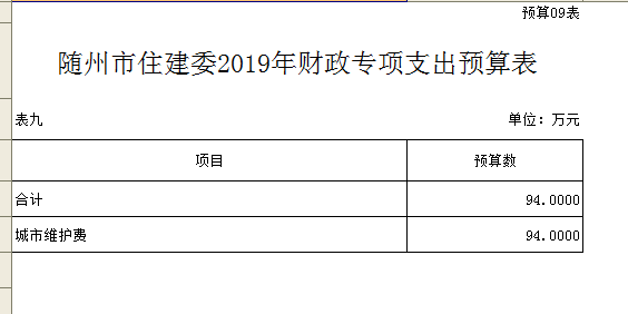 第三部分 隨州市住房和城鄉建設委員會2019年部門預算表