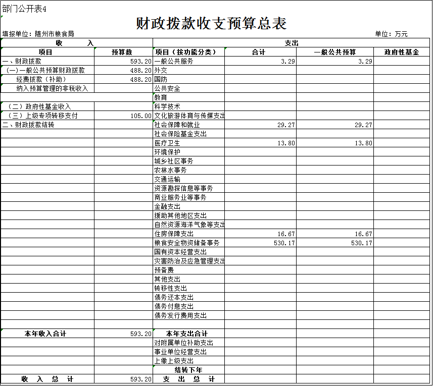 4、財政撥款收支預算匯總表