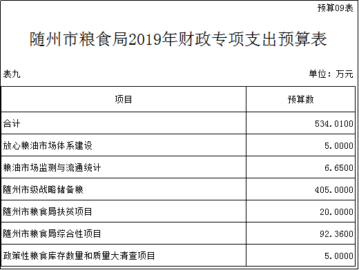 第三部分 ?隨州市糧食局2019年部門預算表