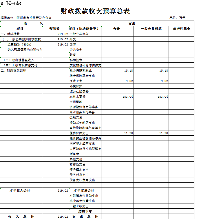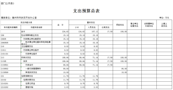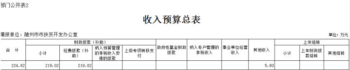 第三部分 隨州市人民政府扶貧開發辦公室2019年部門預算表