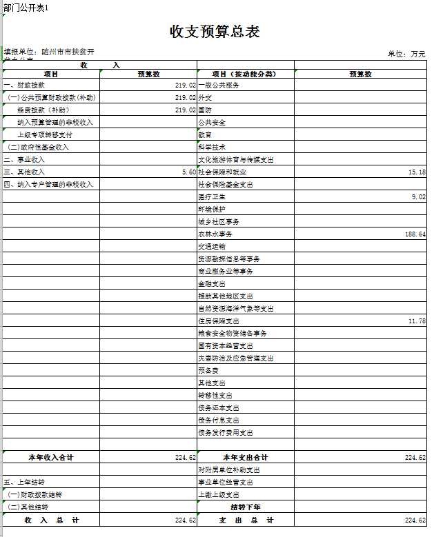 收入預算總額為224.62萬元,較上年預算安排減少77.33萬元,減幅25.61%,減少的原因主要是上年度用于扶貧信息化建設經費。