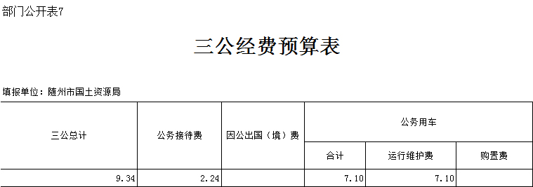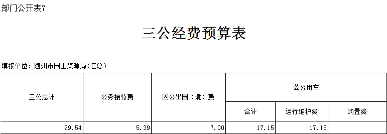 隨州市國土資源局2019年度系統匯總三公經費預算合計29.54萬元,比去年58.64萬元減少29.1萬元,減少比例49.62%,主要原因壓縮了公務接待、公務用車維護費。其中: