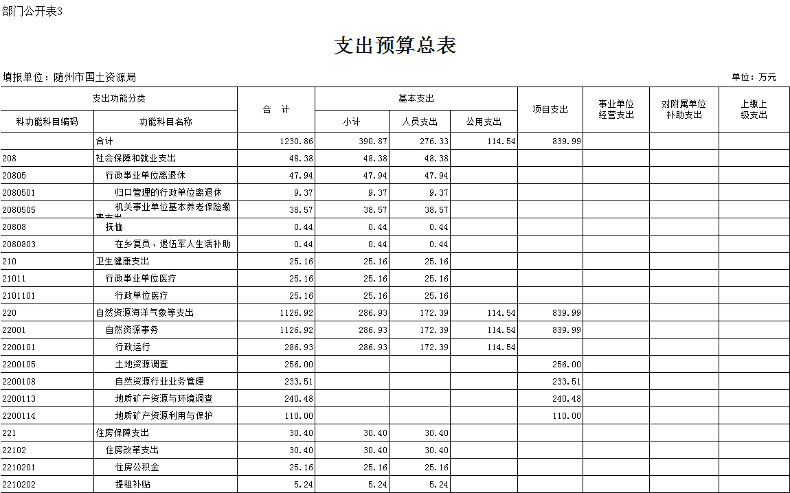 ??? 1、基本支出主要用于保障機關工作人員各項工資支出及國土資源管理工作正常運轉的各項費用。