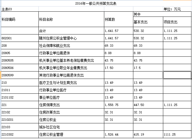 隨州住房公積金管理中心為隨州市人民政府不以營利為目的的公益二類正處級事業單位,內設綜合科、財務會計科、歸集執法科、貸款管理科、內審稽核科、信息管理科等6個科室,1個營業部及廣水、隨縣2個辦事處。從業人員38人,其中,在編22人,非在編16人。