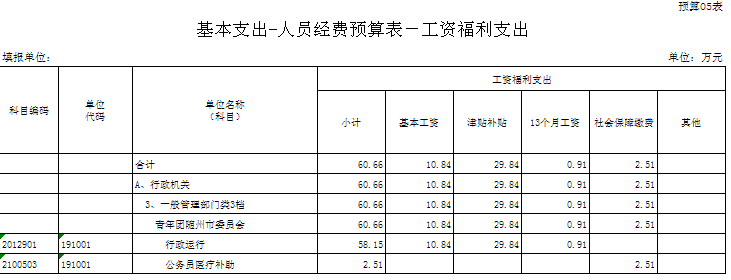 五、部門預算表