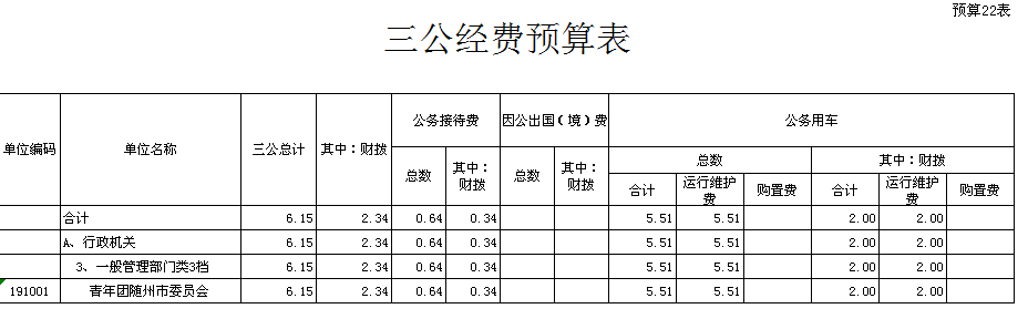 ??團市委認真貫徹落實中央八項規定精神和省委、省政府、市委、市政府關于厲行節約的要求,進一步從嚴控制“三公”經費開支。2016年“三公”經費預算6.15萬元,與上年相比無變化。其中:公務接待費0.64萬元;公務用車運行費5.51萬元;因公出國(境)費0元。本年度無公務用車購置費用。