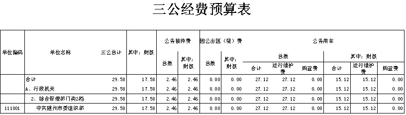 ????3、三公經(jīng)費預算。進一步貫徹落實中央八項規(guī)定,堅持勤儉節(jié)約,根據(jù)工作需要,從嚴從緊控制“三公”經(jīng)費。2016年度三公經(jīng)費預算29.58萬元,與2015年度預算規(guī)模持平。