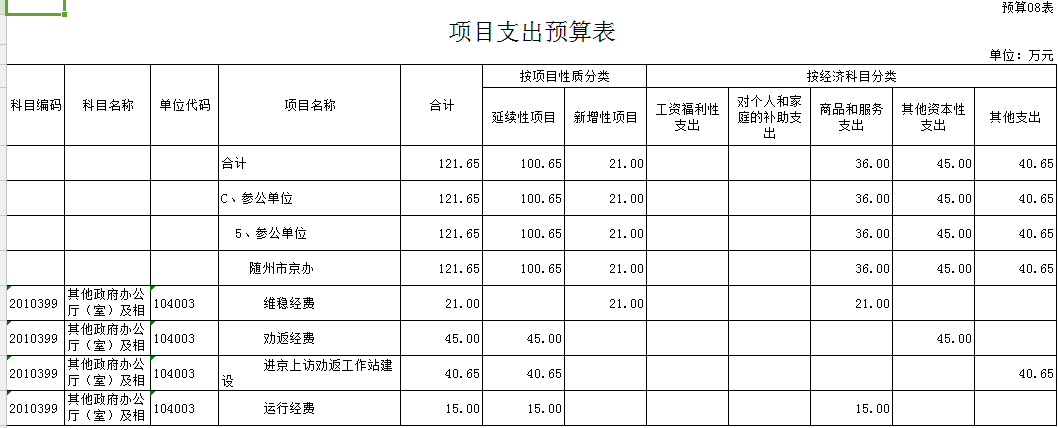 | 預(yù)算01表 | |||||