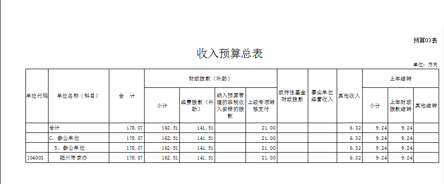 | 財(cái)政撥款收支預(yù)算總表 | |||||