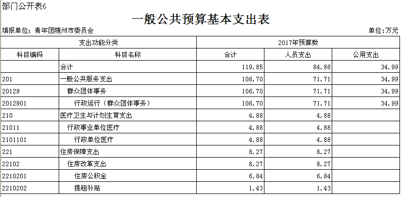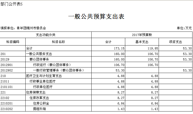 第三部分 共青團(tuán)隨州市委2017年部門預(yù)算表