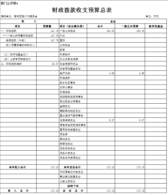 2017年財(cái)政撥款支出173.15萬元,其中,一般公共服務(wù)支出160萬元,醫(yī)療衛(wèi)生支出4.88萬元;住房保障支出8.27萬元。
