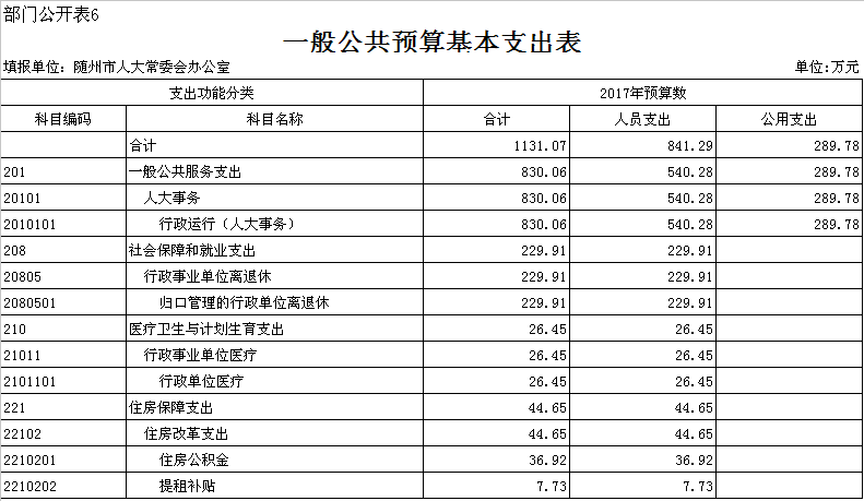 第三部分 隨州市人大辦2017年部門預算表