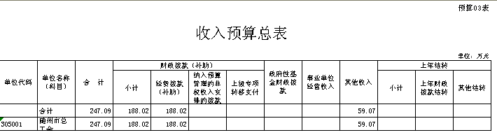 ??? 1、收入預算情況。2017年,收入預算金額247.09萬元,其中財政撥款(補助)188.02萬元,其他收入59.07萬元。