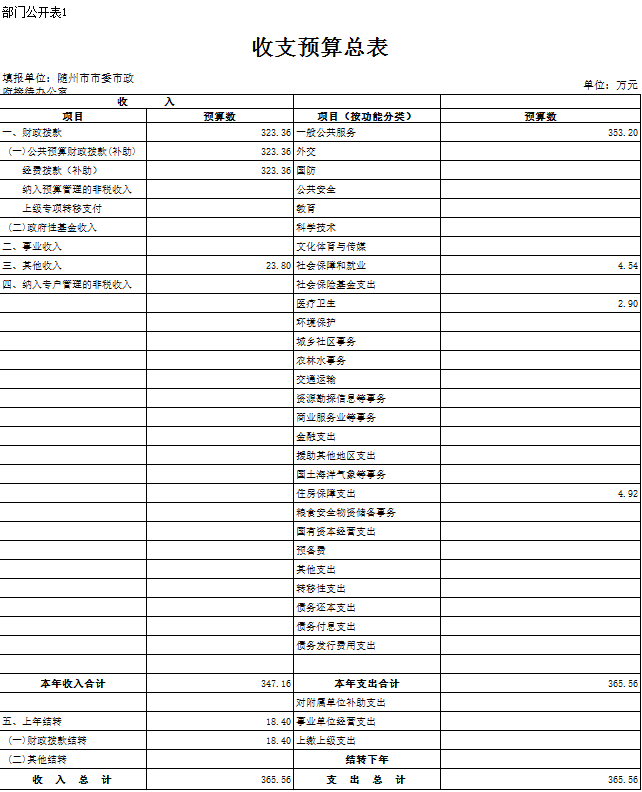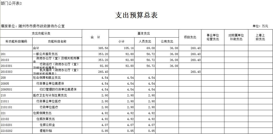 隨州市委隨州市人民政府接待辦公室2017年部門預算表
