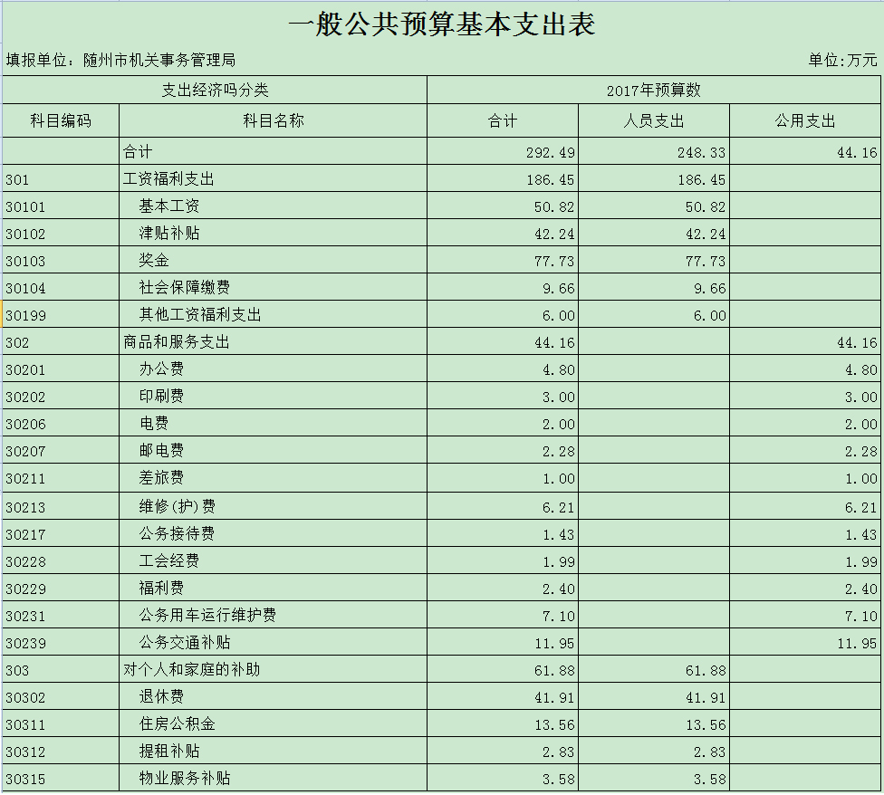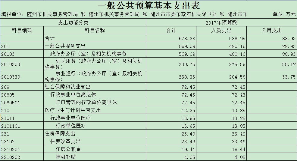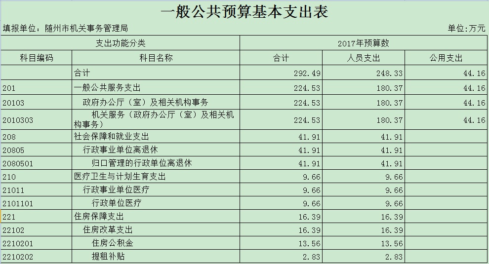 第三部分 隨州市機關事務管理局2017年部門預算表