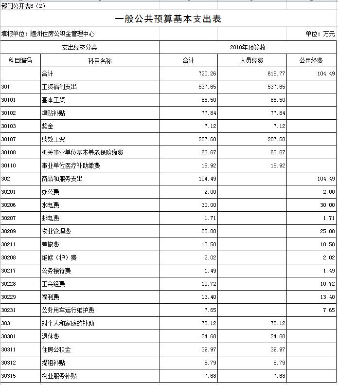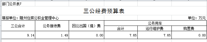 第一部分 隨州住房公積金管理中心概況 一、主要職能 二、基本情況 三、2018年主要工作任務及目標 第二部分 隨州住房公積金管理中心2018部門預算情況 一、2018部門預算收支情況說明 (一)部門收入預算情況 (二)部門支出預算情況 (三)財政撥款支出情況 (四)政府性基金情況 (五)國有資本經營預算情況 (六)機關運行經費支出情況 (七)政府采購情況 二、2018年“三公”經費預算情況說明 第三部分 隨州住房公積金管理中心2018年部門預算表 一、收支預算總表 二、部門收入總表 三、部門支出總表 四、財政撥款收支總表 五、一般公共預算支出表 六、一般公共預算基本支出表 七、一般公共預算“三公”經費支出表 八、政府性基金預算支出表 第四部分 名詞解釋 第一部分 隨州住房公積金管理中心概況 一、主要職能 1、負責編制、執行全市住房公積金的歸集、使用計劃; 2、負責記載職工住房公積金的繳存、提取、使用等情況; 3、負責住房公積金的核算; 4、負責審批住房公積金的提取、使用; 5、負責住房公積金的保值和歸還; 6、負責編制住房公積金歸集、使用計劃執行情況的報告; 7、負責編制、公布住房公積金年度報告; 8、負責擬訂增值收益分配方案并組織實施; 9、承辦市住房公積金管理委員會決定的其他事項。 二、基本情況 隨州住房公積金管理中心為隨州市人民政府不以營利為目的的公益二類正處級事業單位,內設綜合科、財務會計科、歸集執法科、貸款管理科、內審稽核科、信息管理科等6個科室,1個營業部及廣水、隨縣2個辦事處。從業人員39人,其中,在編22人,聘用人員17人。 三、2018年主要工作任務及目標 2018年全年工作目標:力爭實現凈增實繳人數5000人,歸集公積金8億元,發放公積金個人住房貸款6億元,實現增值收益3500萬元,保持全省住房公積金管理先進單位。 第二部分 隨州住房公積金管理中心2018部門預算情況 一、2018部門預算收支情況說明 (一)部門收入預算情況 2018年財政收入1129萬元,全部是財政補助撥款,比上年減少28.72萬元,減少2.48%,主要原因是綜合服務平臺建設費用較上年信息系統建設費用減少。 (二)部門支出預算情況 2018年部門支出預算安排1129萬元,其中:一般公共服務支出104.49萬元,社會保障和就業支出88.35萬元,醫療衛生支出15.92萬元,住房保障支出511.50萬元。比上年減少28.72萬元,減少2.48%,主要原因是綜合服務平臺建設費用較上年信息系統建設費用減少。 (三)財政撥款支出情況 2018年財政撥款支出1129萬元,其中:一般公共服務支出104.49萬元,社會保障和就業支出88.35萬元,醫療衛生支出15.92萬元,住房保障支出511.50萬元。比上年減少28.72萬元,減少2.48%,主要原因是綜合服務平臺建設費用較上年信息系統建設費用減少。 (四)政府性基金情況 2018年本部門無政府性基金收支預算。 (五)國有資本經營預算情況 沒有使用國有資本經營預算撥款安排的支出。 (六)機關運行經費支出情況 2018年,中心機關運行經費預算103萬元,明細如下:辦公費2.00萬元,水電費30.00萬元,物業管理費25萬元,郵電費1.71萬元,維修(護)費2.02萬元,差旅費10.50萬元,工行會費10.72萬元,福利費13.40萬元,公務用車費7.65萬元、為公務用車運行維護費。2018年機關運行經費比2017年預算62.37萬元增加40.63萬元、增長65.14%,預算增加的主要原因是中心本部及廣水、隨縣辦事處業務大廳的水電費和物業管理費列入機關運行經費,兩項共增加預算52.59萬元。 (七)政府采購情況 2018年中心納入政府采購預算資金114萬元,明細如下:綜合服務平臺建設74萬元,網絡設備、計算機及外設購置費40萬元,主要原因是綜合服務平臺建設費用較上年信息系統建設費用減少。 二、2018年“三公”經費預算情況說明 2018年中心“三公”經費預算安排9.14萬元,比2017年預算數11.53萬元減少2.39萬元,減少20.73%,減少的主要原因是壓縮公務用車費用。“三公”經費預算中,因公出國(境)費用0萬元,同比上年0萬元增加0萬元;公務接待費1.49萬元,比上年1.33萬元增加0.16萬元,增加12.03%,增加的主要原因是隨著住房公積金業務規模的快速增加,各管理中心在提高綜合服務水平和信息化建設等方面加強了經驗交流,接待人次會有所增加;公務用車費7.65萬元,比上年10.20萬元減少2.55萬元,減少25%,減少的原因是節約開支、停用了老舊車輛。其中:公務用車購置費0萬元,比上年0萬元增加0萬元。公務用車運行費7.65萬元,比上年10.20萬元減少2.55萬元,減少25%,減少的原因是節約開支、停用了老舊車輛。 第三部分 隨州住房公積金管理中心2018年部門預算表 一、收支預算總表 二、部門收入總表 三、部門支出總表 四、財政撥款收支總表 五、一般公共預算支出表 六、一般公共預算基本支出表