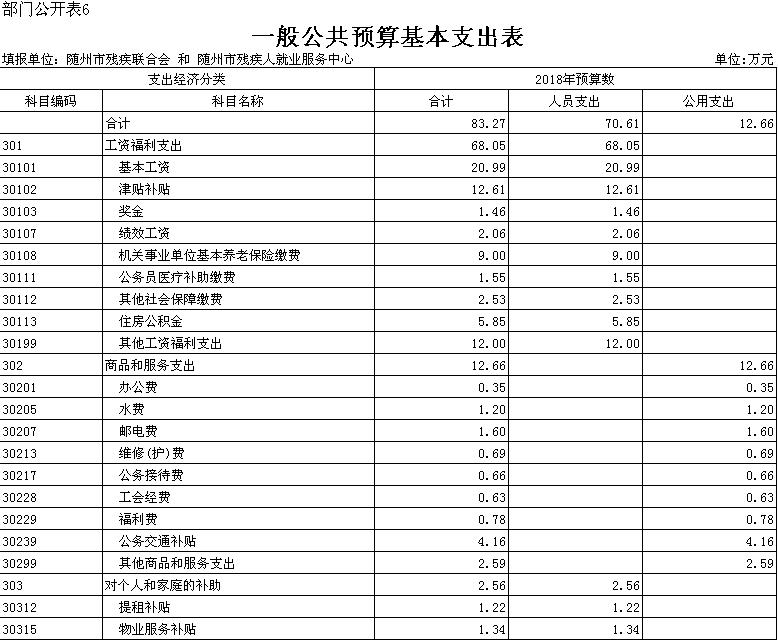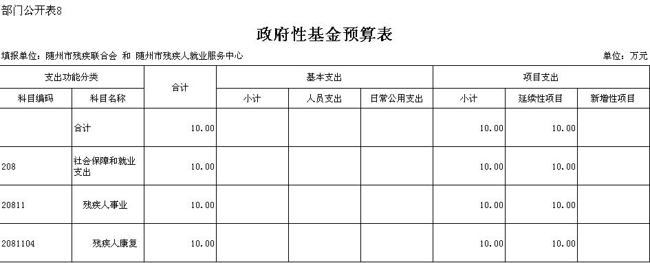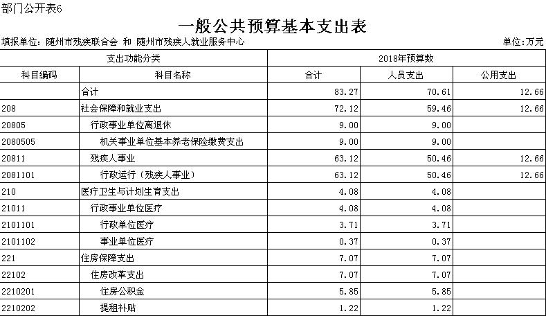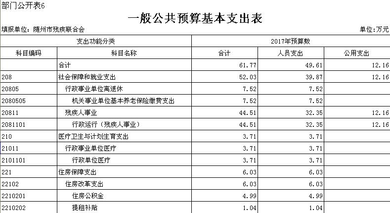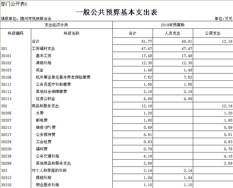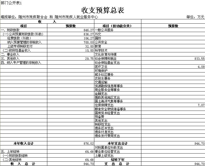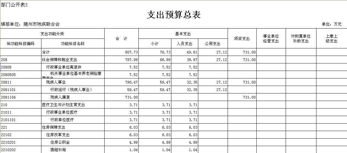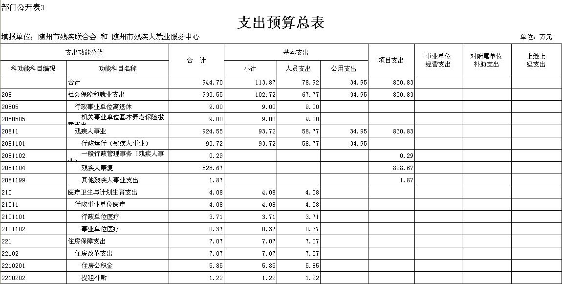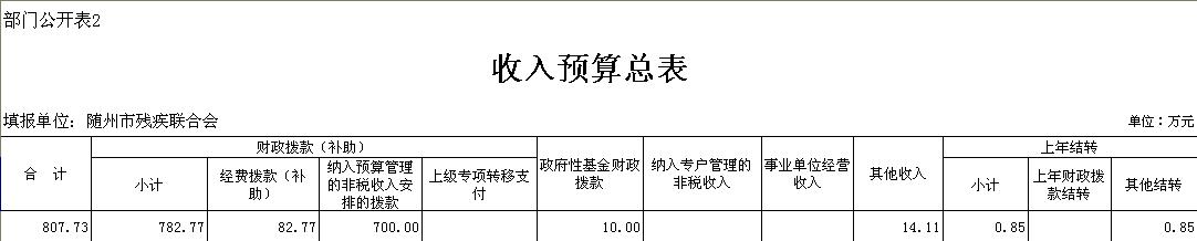 1、隨州市殘疾人聯(lián)合會機關(guān)預(yù)算公開表