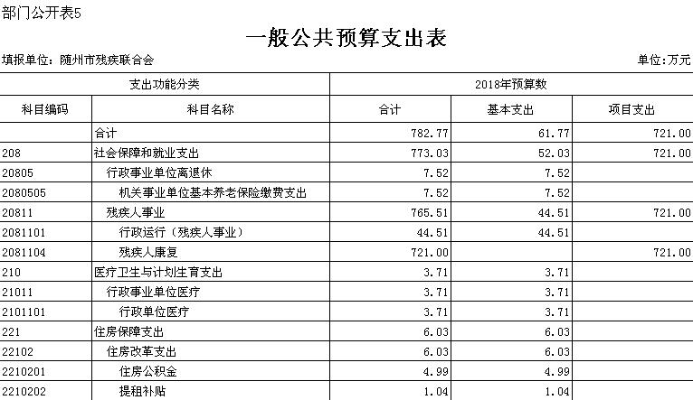 隨州市殘疾人聯(lián)合會2018年部門預(yù)算公開說明及明細表