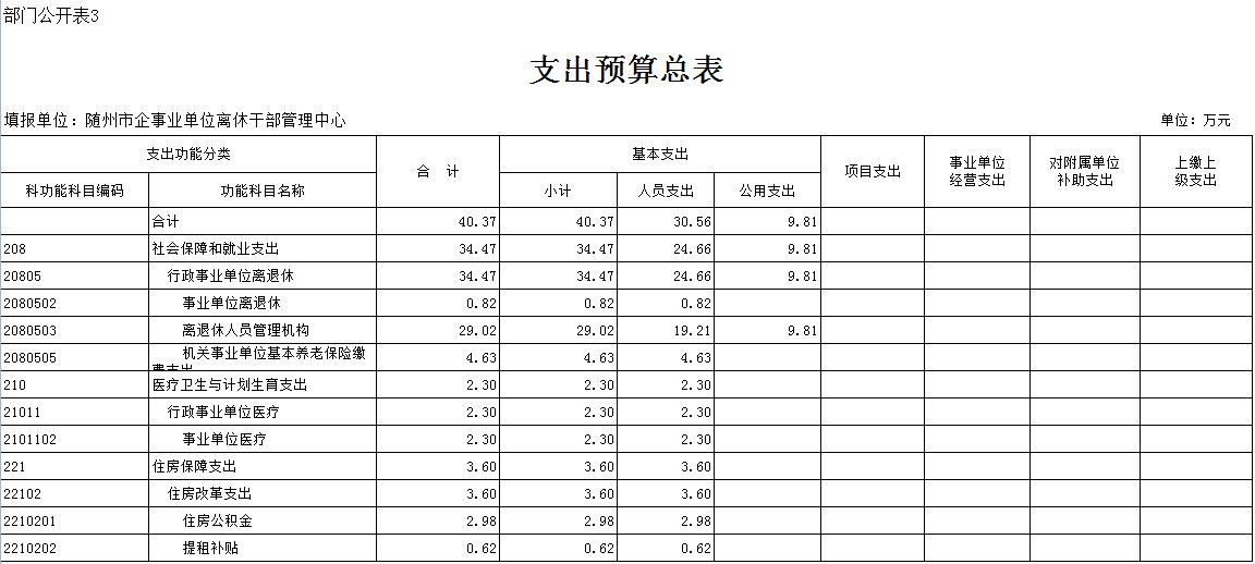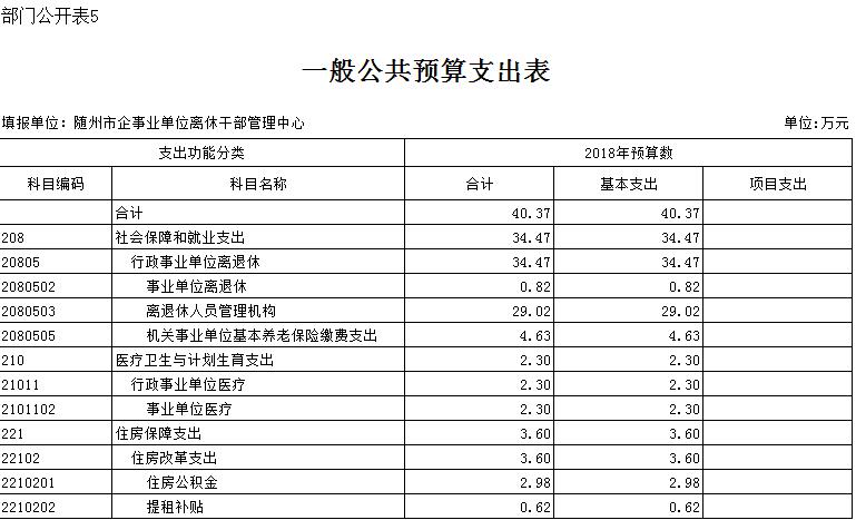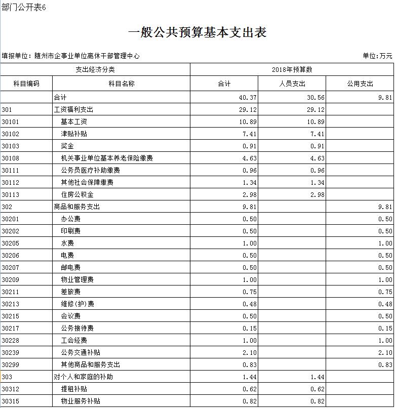 第三部分 隨州市企事業單位離休干部管理服務中心2018年部門預算表