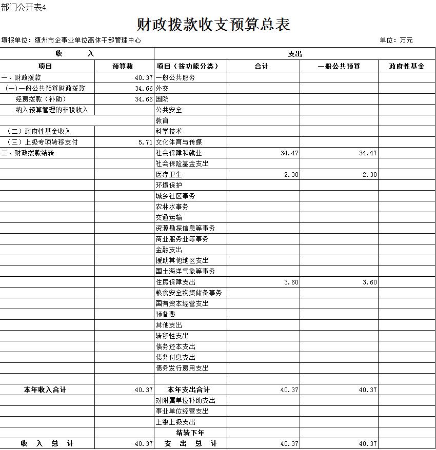 本年度財政撥款支出預算40.37萬元,較去年減少3.8萬元,下降8.6%。