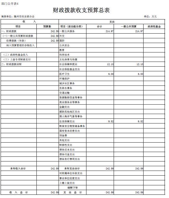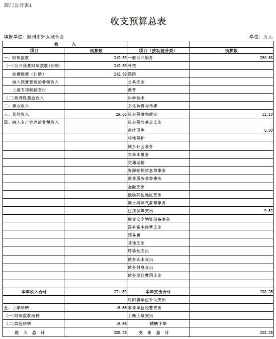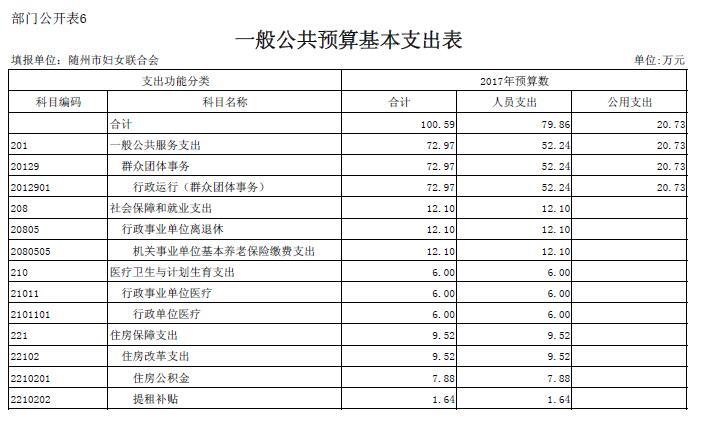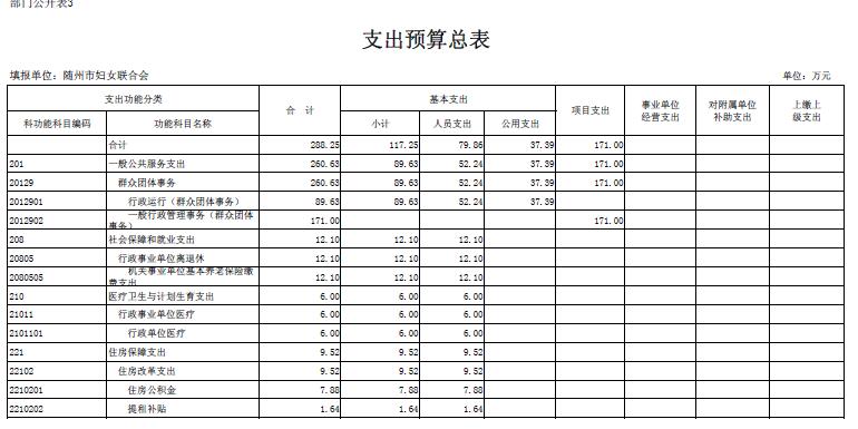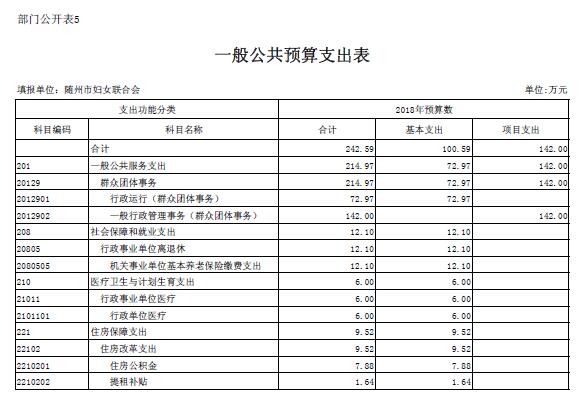隨州市婦聯(lián)2018年部門預算表