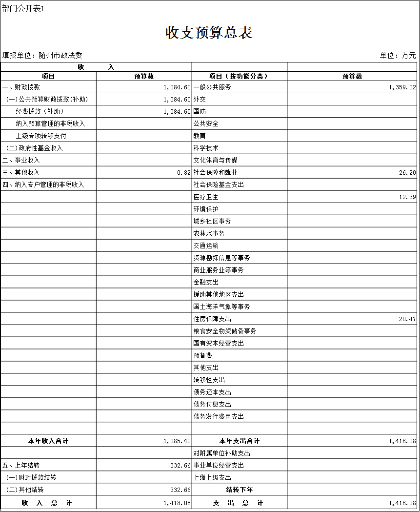 2018年財政預(yù)算支出1418.08 萬元,其中,一般公共服務(wù)支出1359.02萬元,社會保障和就業(yè)支出26.2萬元,醫(yī)療衛(wèi)生支出12.39 萬元,住房保障支出20.47 萬元。比上年增加562.57萬元,同比增39.67%,主要原因是增加了新增性項目——市政法機關(guān)信息化“1234”工程建設(shè)專項經(jīng)費預(yù)算支出。
