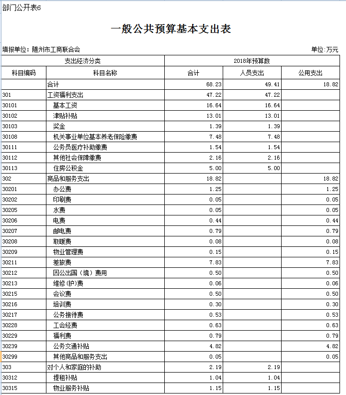 第三部分隨州市工商聯2018年部門預算表