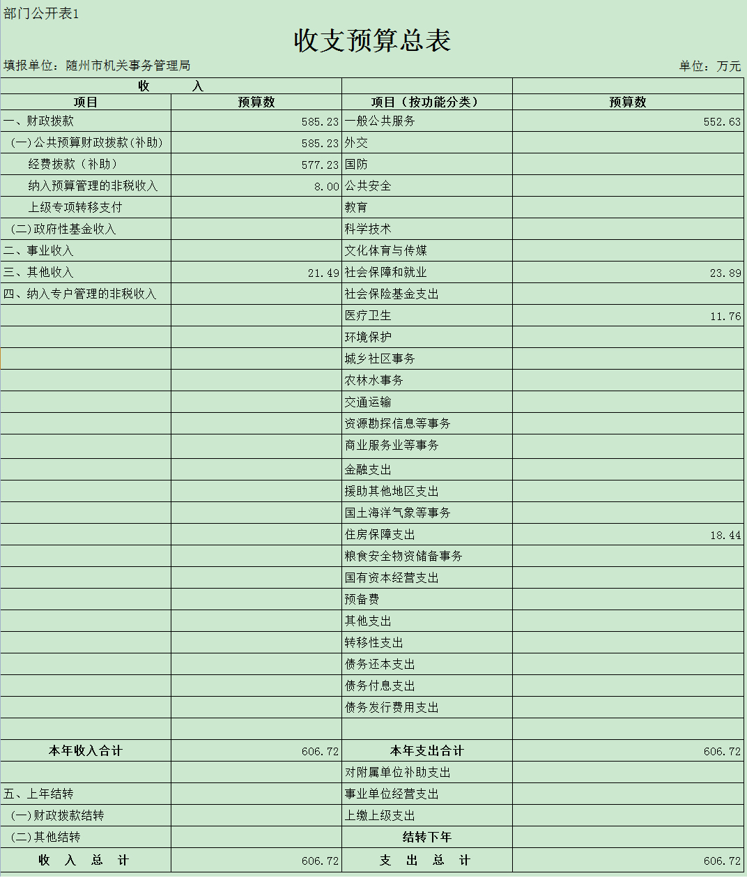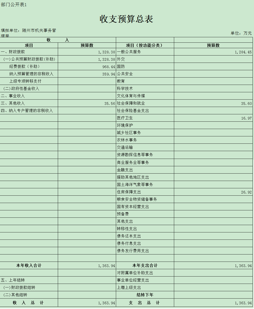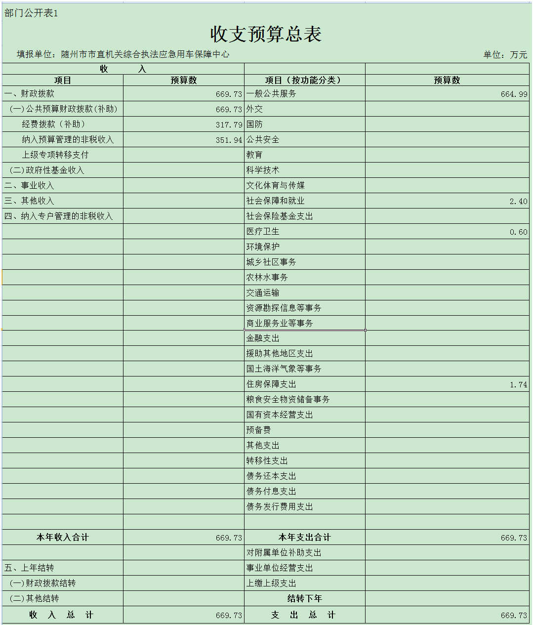 一、部門預算匯總表