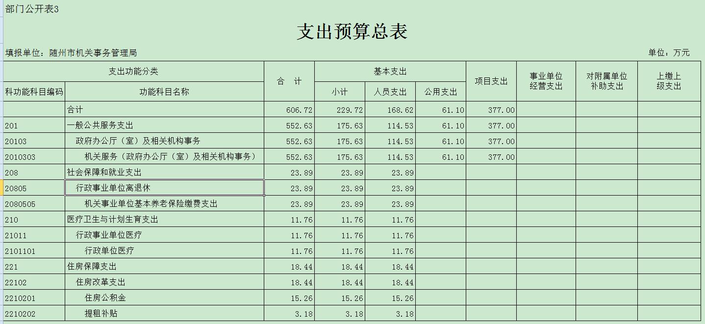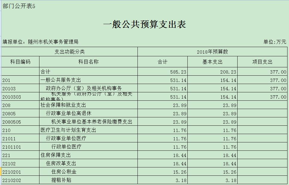 隨州市機關事務管理局2018年部門匯總預算公開