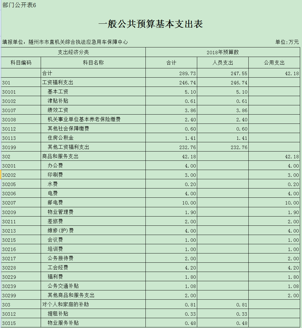 一、本部門2018年部門預算匯總表